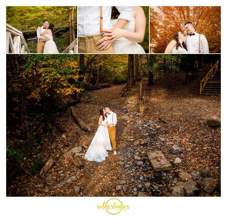 Their ceremony and reception both took place at the camp; a place they really enjoy spending time at with their family. The rich burgundy they chose for their wedding color was a great choice to complement the reds, yellows and oranges all around us. Caitlin’s bouquet was at the top of our favorites list for being beautiful, unique, and will last forever!